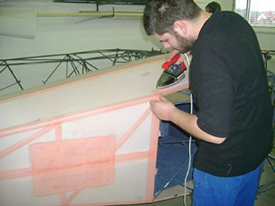 Avionics - Radio and Transponder aluminium earthing plates secured to the fuselage prior to covering giving perfect transmissions.