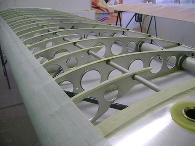 Cowlings, wingtips, spats, seat pan - Glass reinforced plastic (GRP) or carbon fibre depending on model.